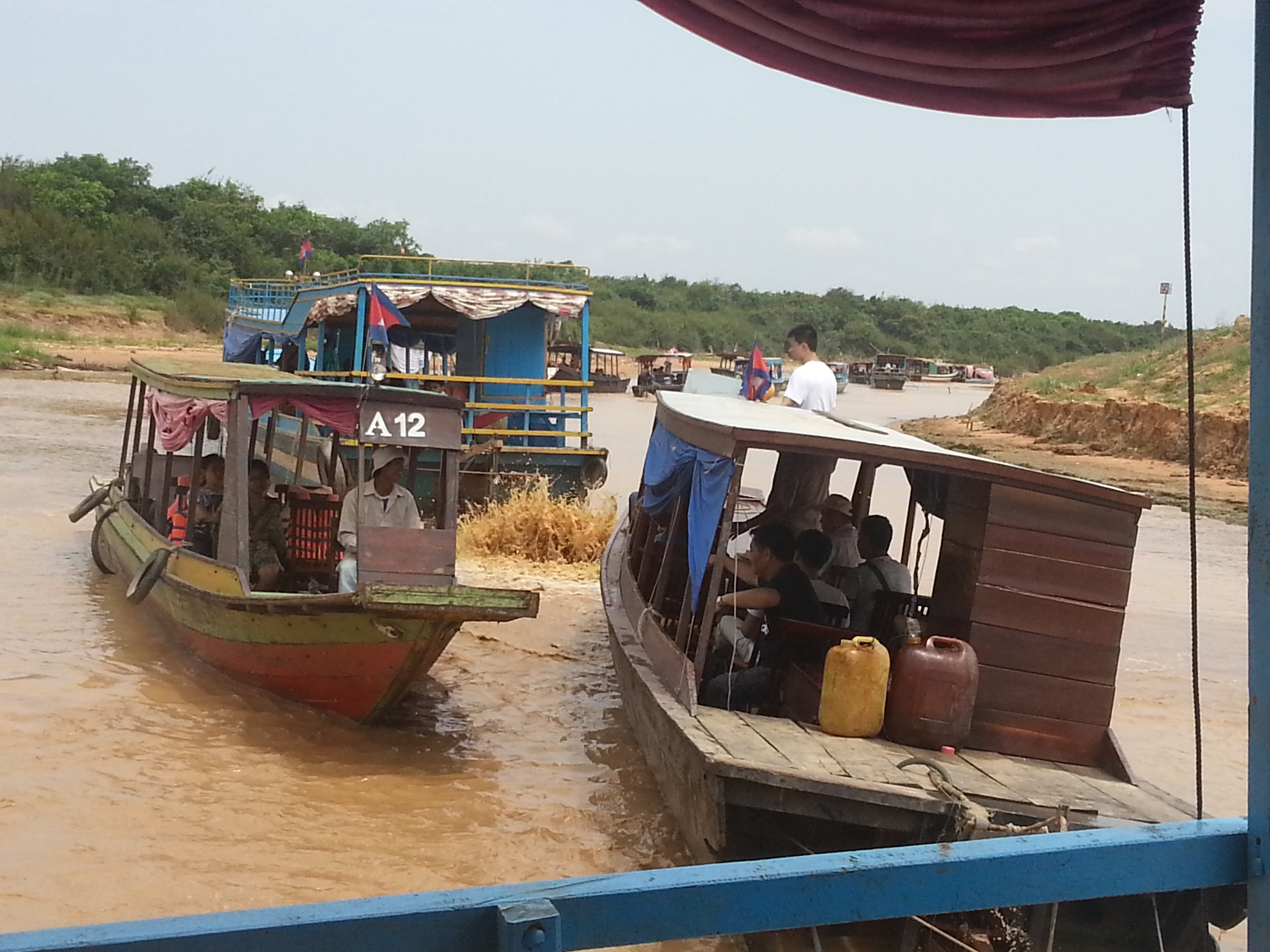 Tuc Tuc and English Guide ready. On Cambodia New Years Day. The opposite of Switzerland, where you have to ski slopes for yourself on New Years Day (other people have hang overs), here in Cambodia everybody is still celebrating. Actually New Year day is just the first of 3 days where everybody has vacation. So we had lots and lots of people. Thailand has the same New Year and they flock to Angkor on that occasion.
